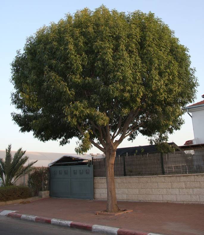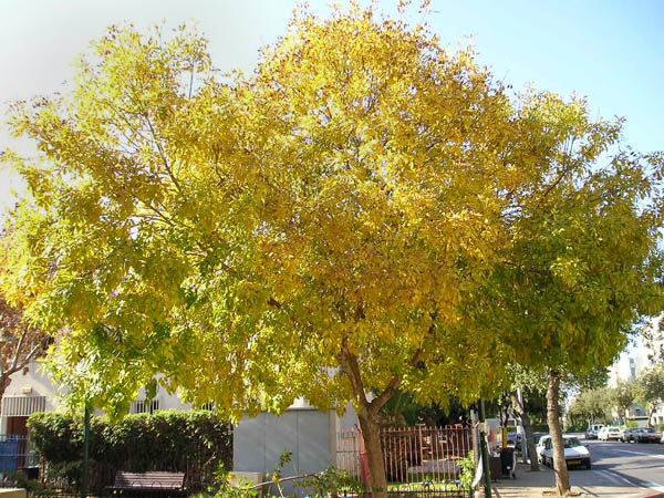 עץ גבוה ועגול, עלווה ירוקה רעננה וצבעי שלכת צהובה יפים