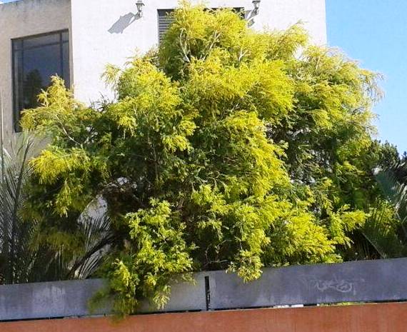 עץ קטן שיח גדול ירוק עד , בעל צורה פרועה. עלים מחטניים קטנים בצבע לימון יפה ומרשים. הפריחה לא משמעותית בצבע לבן באביב תחילת הקיץ. עמיד ליובש ומתאים לכל הארץ חוץ מההר הגבוה ואזורים מוכי קרות. משמש כעץ קטן וכגדר חיה גזומה וחופשית . צמח בעל עלווה מאד בולטת בצבעה .