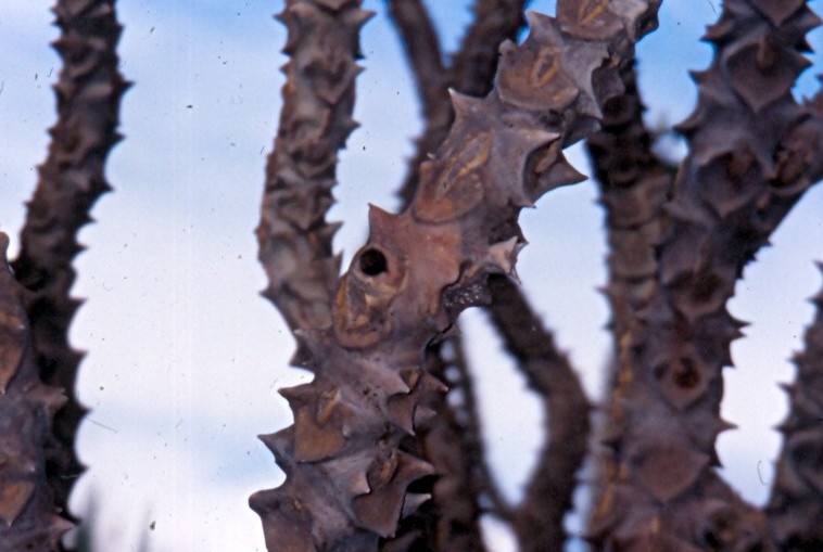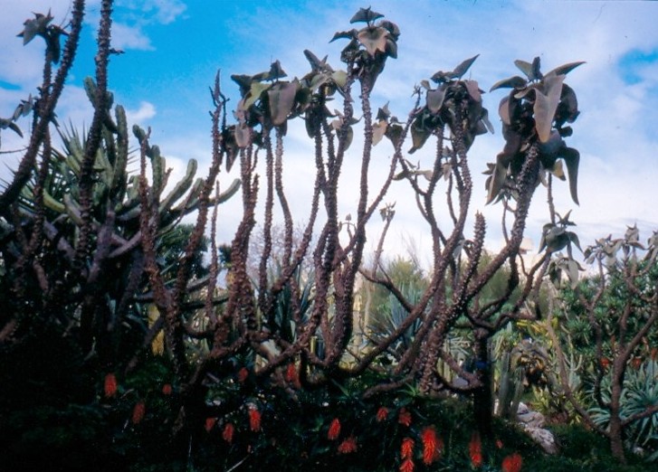שיח סוקולנטי ירוק עד. צמח פיסולי הגדל על כמה גזעים. עלים ענקיים אפרפרים לבידים מקופלים במקצת וצורתם כצורת הכובע שחבש נפולאון. כאשר נושר עלה הוא משאיר על הגזע צלקת מעוינת בולטת מאד בעלת שני קוצים. עם השנים הענפים נחשפים והמראה נעשה מאיים וכדאי לעשות חידוש נמוך. הפריחה באביב ביעילות נמוכה על עמודים בראשי הענפים בצבע צהבהב.