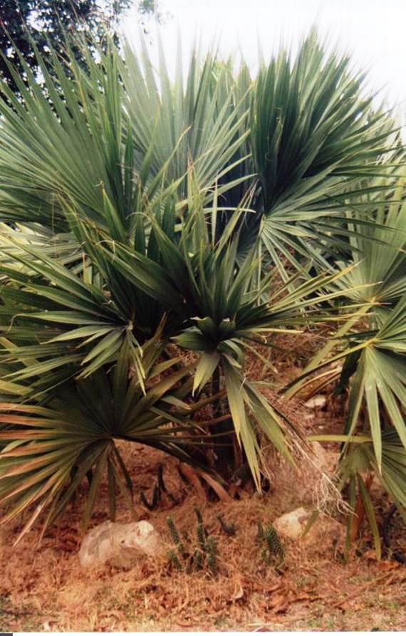 דקל בגובה בינוני, צומח מאד לאט ולכן מתאים לגינה הביתית מכיוון שנישאר שנים בגובה העיניים וקל לתחזקו. בעל גזע קישוטי ,גזע יחיד בקוטר 40 – 30 ס'מ. בסיסי העלים לבנים ומצטלבים ויוצרים מעויינים סימטריים וגדולים. עליו דמויי מניפה קשיחה עגולה ומקופלת במרכזה המורכבת מעלעלים סרגליים ומחודדים. אינו קוצני. הפרי והפריחה אינם משמעותיים. דקל חזק צנוע בדרישותיו. עמיד ליובש ולקו שני של חוף ים.