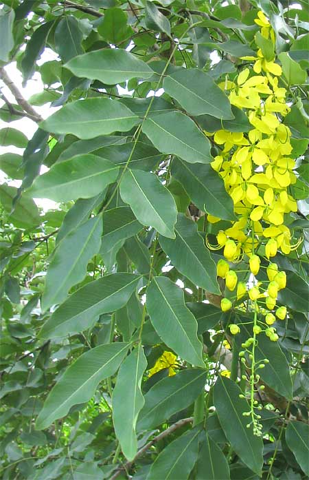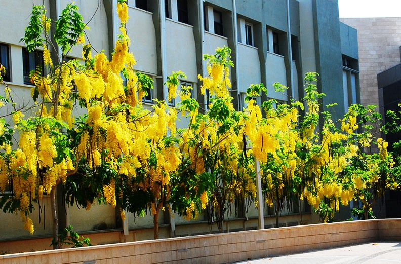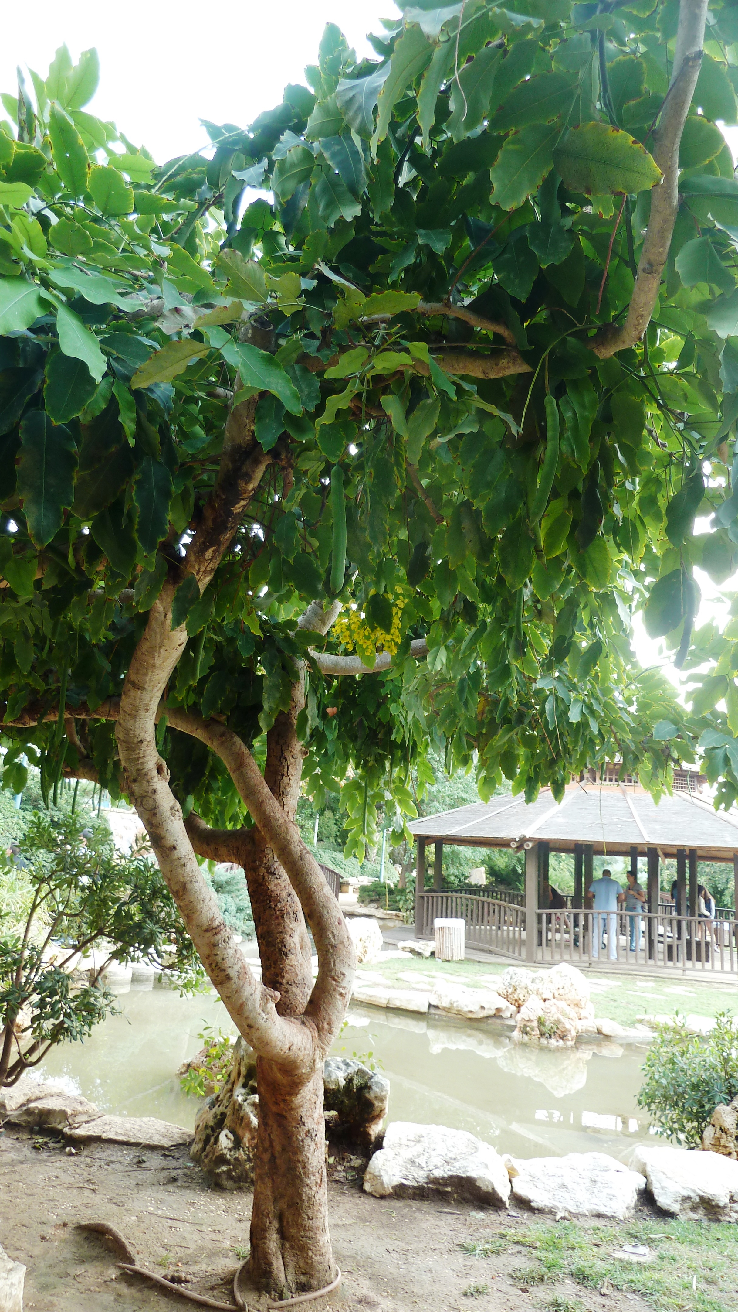 עץ נשיר מותנה בינוני בגודלו. יופיו בפריחתו הצהובה באשכולות שמוטים בקיץ במשך כחודשיים. יוני – אוגוסט. עליו מנוצים גדולים ונופו אורירי. הנשירות משתנה באזורי הארץ השונים .  באזורים קרים משיר עליו בדצמבר – ינואר ומלבלב עם הפריחה ביוני. באזורים חמים או בחורפים חמים ישיר עליו רק במאי כשמתחיל לפרוח וילבלב שוב רק באמצע יולי. הפרי תרמיל עגול וארוך דמוי אבוב או נקניק קבנוס. מכאן כל שמותיו. זהו עץ קישוטי לא לצל. אינו מתאים להר ולהר הגבוה. זקוק להשקיה טובה עד להתבססות.