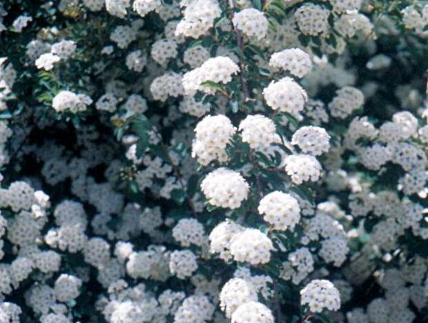 שיח צפוף מאוד, נשיר, עם ענפים קשתיים וצימוח רחב וגדול דמוי בוגנויליה. פריחה אביבית מרשימה מאוד לכל אורכם של הענפים, בצבע לבן במשך כחודש. הפרי אינו משמהותי. ניראה מצוין באזורים הקרים של הארץ. יפה כגדר חיה רחבה וגדולה ללא גיזום. בשוליים של גינה או פארק. נשיר ולכן אינו טוב במקומות בהם צריך פרטיות רבה.