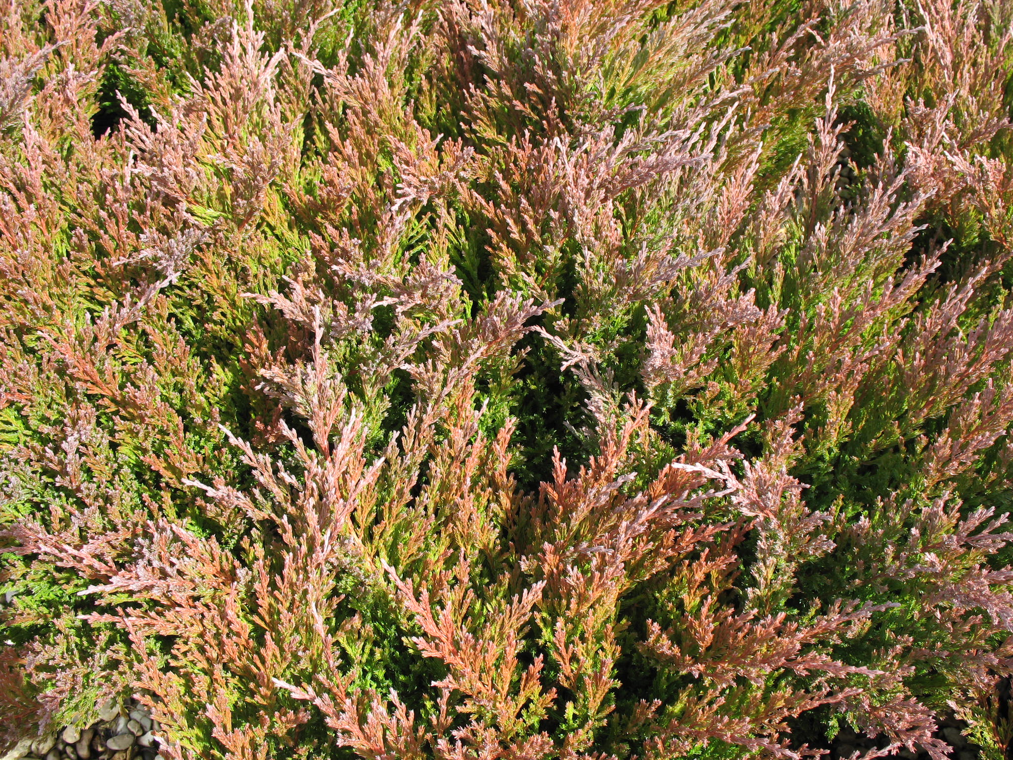 מחטני ירוק עד . משתרע זוחל. העלים קשקשיים בצבע ירוק בחורף כשיורדות הטמפרטורות צבעו מאדים. בעל הגוון המאדים ביותר מבין כל הערערים. הפריחה אינה משמעותית. הפרי אצטרובל קטן כחלחל קישוטי. צמח כיסוי יפה במיוחד . צומח לאט וצריך סבלנות. עמיד לקור ומעדיף את המקומות הקרירים של הארץ.