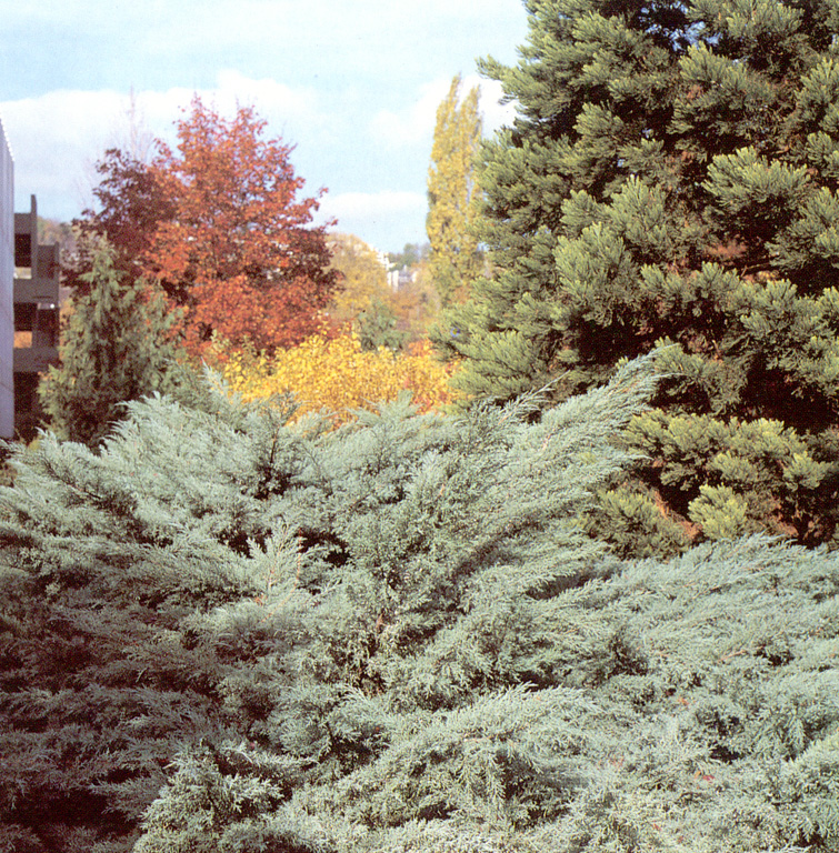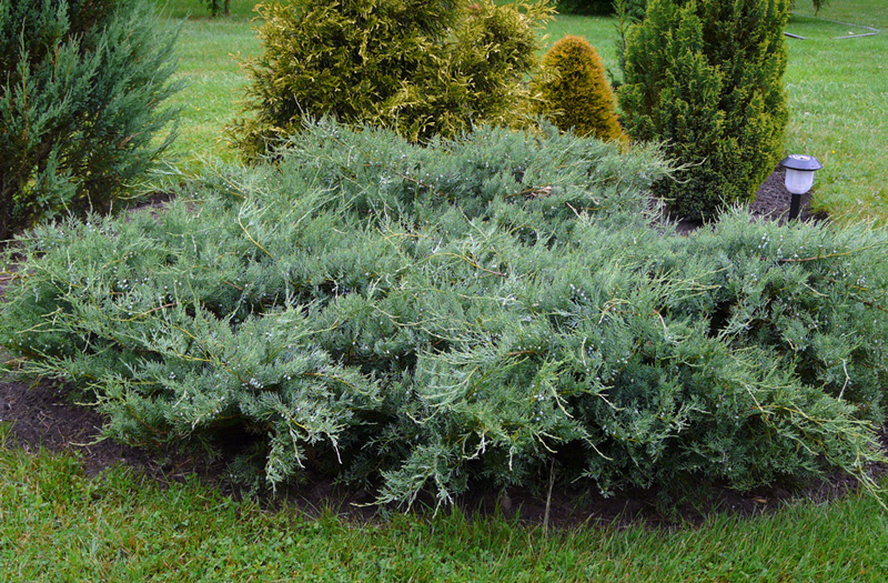 שיח מחטני ירוק עד גדול (רוחבו יכול להגיע ל5-6 מ' ) . בעל צורת צימוח מאד מיוחדת. ענפיו גדלים בזוויות של 45 מעלות מהמרכז ויוצרים מין משולש גדול פתוח לשמים. העלים קשקשיים בצבע אפור מכחיל. הפריחה אינה משמעותית. הפרי אצטרובל קטן כחלחל קישוטי. צמח המתאים כבודד בכיכר או במרכז ערוגה או ככיסוי שטח גבוה ואז יש לשתול בקבוצה ולהקפיד על מרווחי השתילה. צומח לאט וצריך סבלנות. עמיד לקור ומעדיף את המקומות הקרירים של הארץ.