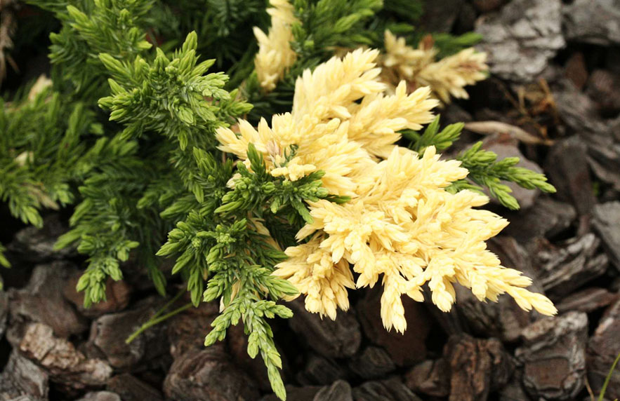 מחטני ירוק עד . משתרע גבוה יחסית. העלים קשקשיים בצבע ירוק. הפריחה אינה משמעותית. הפרי אצטרובל קטן כחלחל קישוטי. צמח כסוי . צומח לאט וצריך סבלנות. עמיד לקור ומעדיף את המקומות הקרירים של הארץ. קיים גם זן מגוון בעל קצוות עלים צהובים וירוקים.