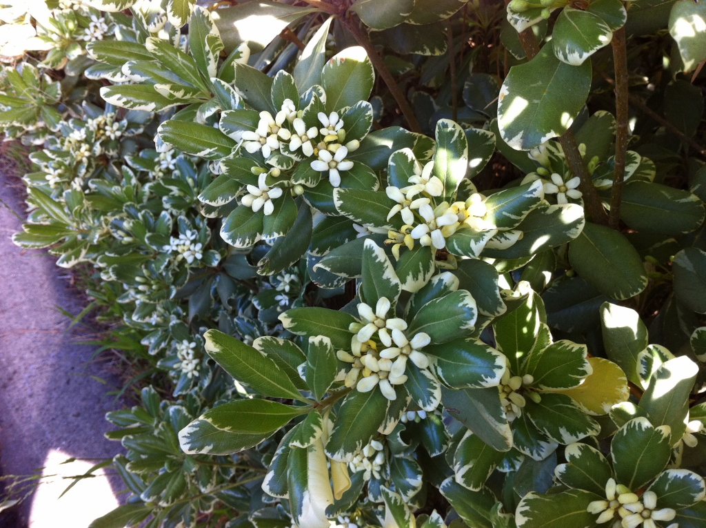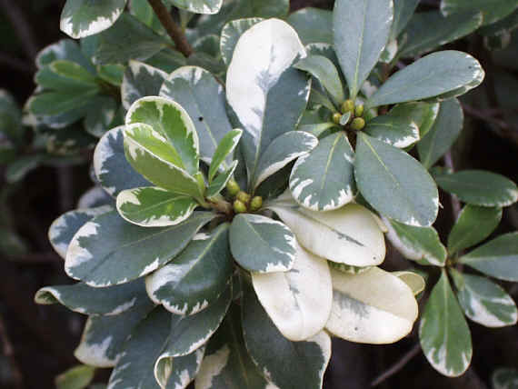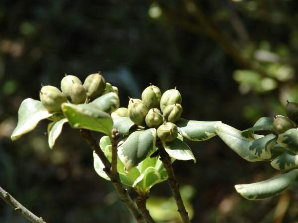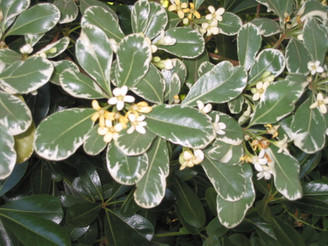 שיח ירוק עד גדול וצפוף עלווה (כ 2 מ' גובה ורוחב). העלים מבריקים בצבע ירוק עם גיוון בלבן. צומחים בשושנת ושפתם כפופה כלפי מטה. העלים נראים כפרחים על הצמח. הפריחה באביב בתפרחות לבנות סוככניות ריחנית ויפה. כחודש וחצי. בסתיו חורף נפתחות הענבות שהבשילו ומגלות זרעים מכוסים בחומר אדום ודביק. בזמן זה הפרי מהווה קישוט על הצמח. צמח חזק מאד מאריך חיים ואינו דורש הרבה. עמיד לקו 2 של חוף ים עמיד ליובש ולצידי דרכים. קצב צימוח איטי ביותר יותר מהזן הירוק. עמיד ליובש ומעדיף חצי צל וצל. אם כי צומח גם בשמש מלאה.מתאים לאזורי הארץ הקרירים יותר.