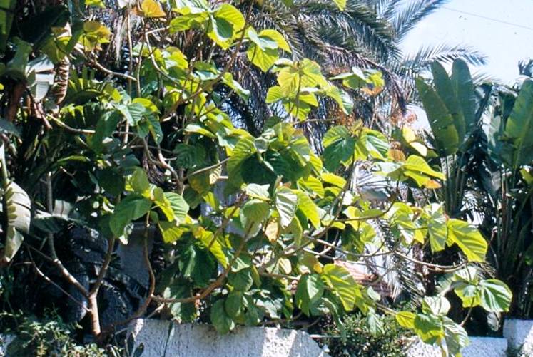 צורת העץ ומערכת הגזעים והענפים הפיסולית והמיוחדת עלים ופירות גדולים ומיוחדים.