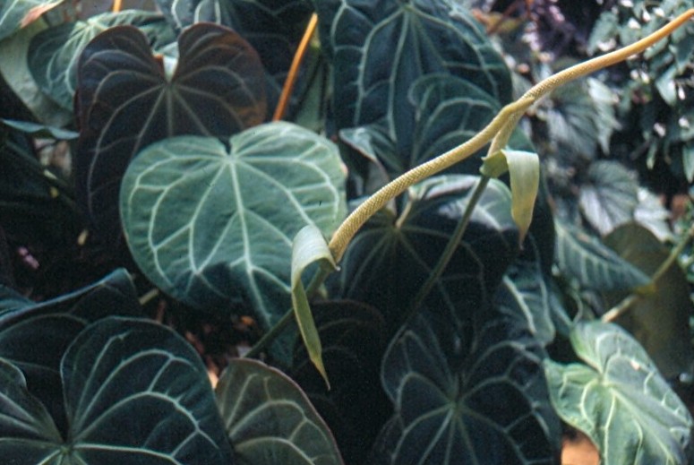 צמח בית עשבוני ירוק עד.  עלים יפים מגוונים בגווני ירוק ובין העורקים עוברים פסים לבנים מוכספים. פטוטרת העלים ארוכה ואדומה. פריחה מעניינת בצורת מקלות ירוקים עומדים.צמח לתנאי האור הגבוהים ביותר בבית. זקוק להשקיה סדירה אבל להיזהר מעודף מים בעציץ. כצמח בית מתאים לכל אזורי הארץ. בגינה רגיש לקור וקרה.