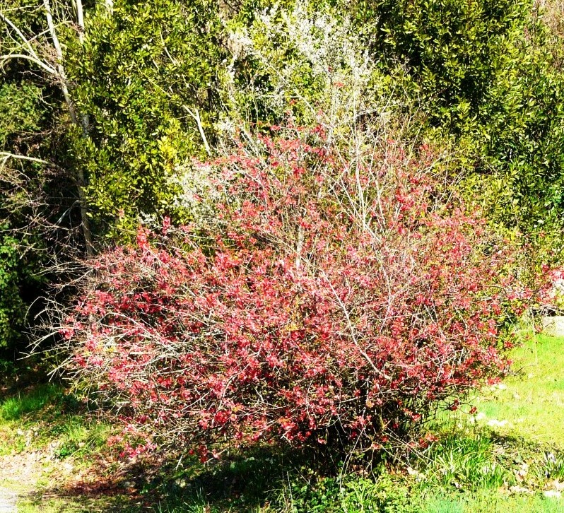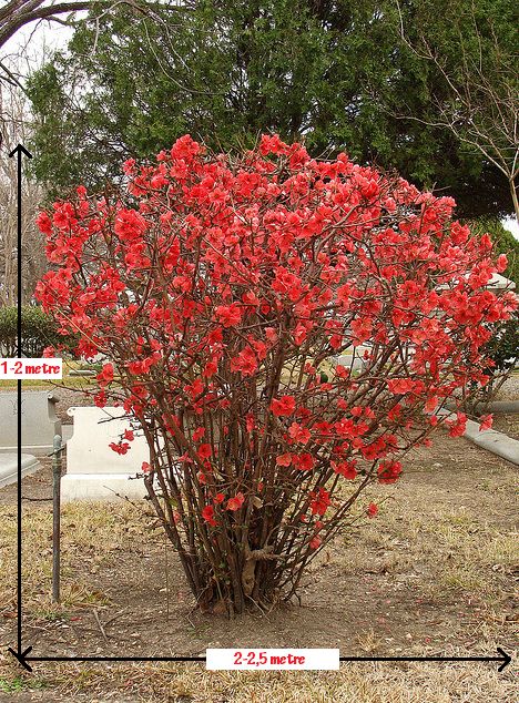 שיח מעוצה ,קישוטי, יכול להגיע לגובה 1.5 מ', נשיר ולו קצב צימוח איטי. פורח לפני העלים על ענפים כהים משנה שעברה בסוף החורף עד האביב (דצמבר-אפריל) . הפרחים בולטים מאד לעין בגווני אדום וורוד כהה צבע מאד מיוחד בתוך משפחת הורדיים. צורת הפרחים כצורת פרחי השקד והפריחה מקסימה וקישוטית מאד. לאחר הפריחה ,באביב, חל הליבלוב בצבע ירוק- אדמדם המשתנה לירוק. אז גם מתפתחים הפירות דמויי החבוש ריחניים, קטנים ומרים אבל ניתנים לאכילה בריבות או ליפתן. הגיבעולים קוצניים. צמח האוהב מאד קור ואזורים קרים ושם יראה במיטבו ויפרח בשפע. משמש כצמח מוקד ,על רקע ירוקי עד, מתאים לגינת גג ,גם כדאי לקטוף ממנו ענף קישוטי לאגרטל. השקיה לא רבה אך סדירה . לשמש מלאה וחצי צל.