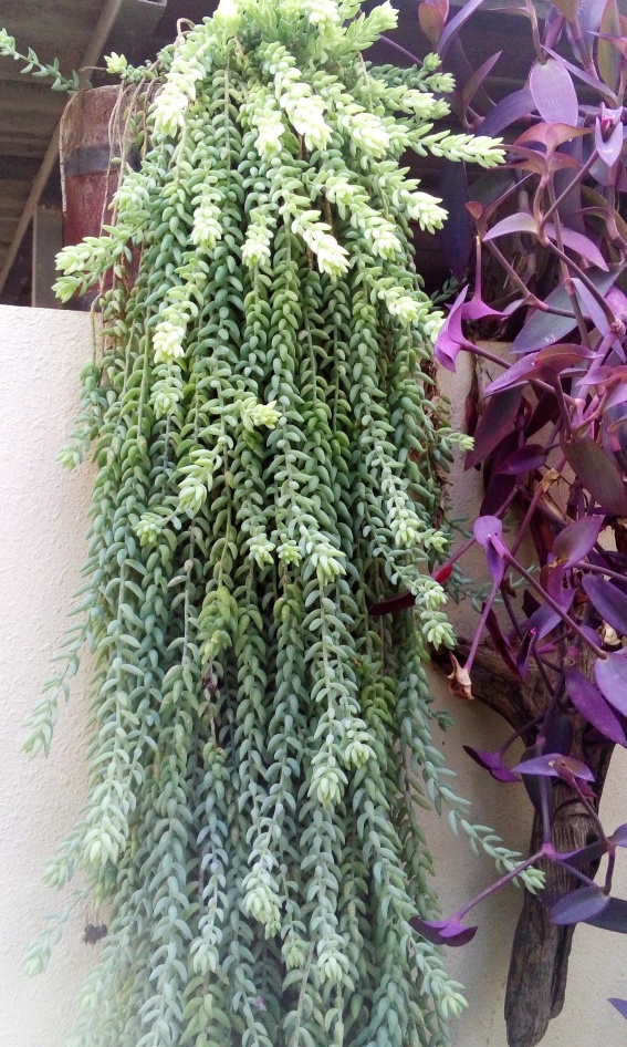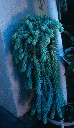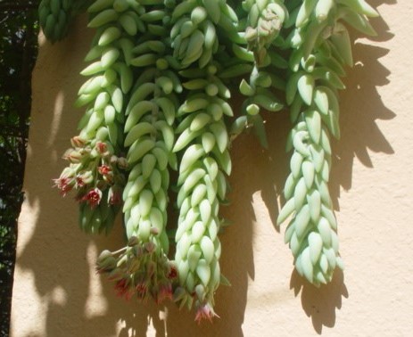 סוקולנט קטן משתלשל כלפי מטה בענפים מכוסים לגמרי בעלים גליליים קטנים בצבע ירוק אפור חיוור. הפריחה קצרה ואינה משמעותית בצבע אדמדם בסוף כל ענף. מתאים לשמש מלאה וחצי צל וכן לצל מלא ולכן יכול לשמש כצמח בית בשמש מלאה של בית. . עמיד מאד ליובש 2 ( לפי קריטריוני היובש ).  מתאים לכל אזורי הארץ. צמח מצוין לעציצים תלויים למסלעות ולגינה יובשנית. מתפרק בקלות אבל גם משתרש בקלות מכל עלה גלילי שנופל.