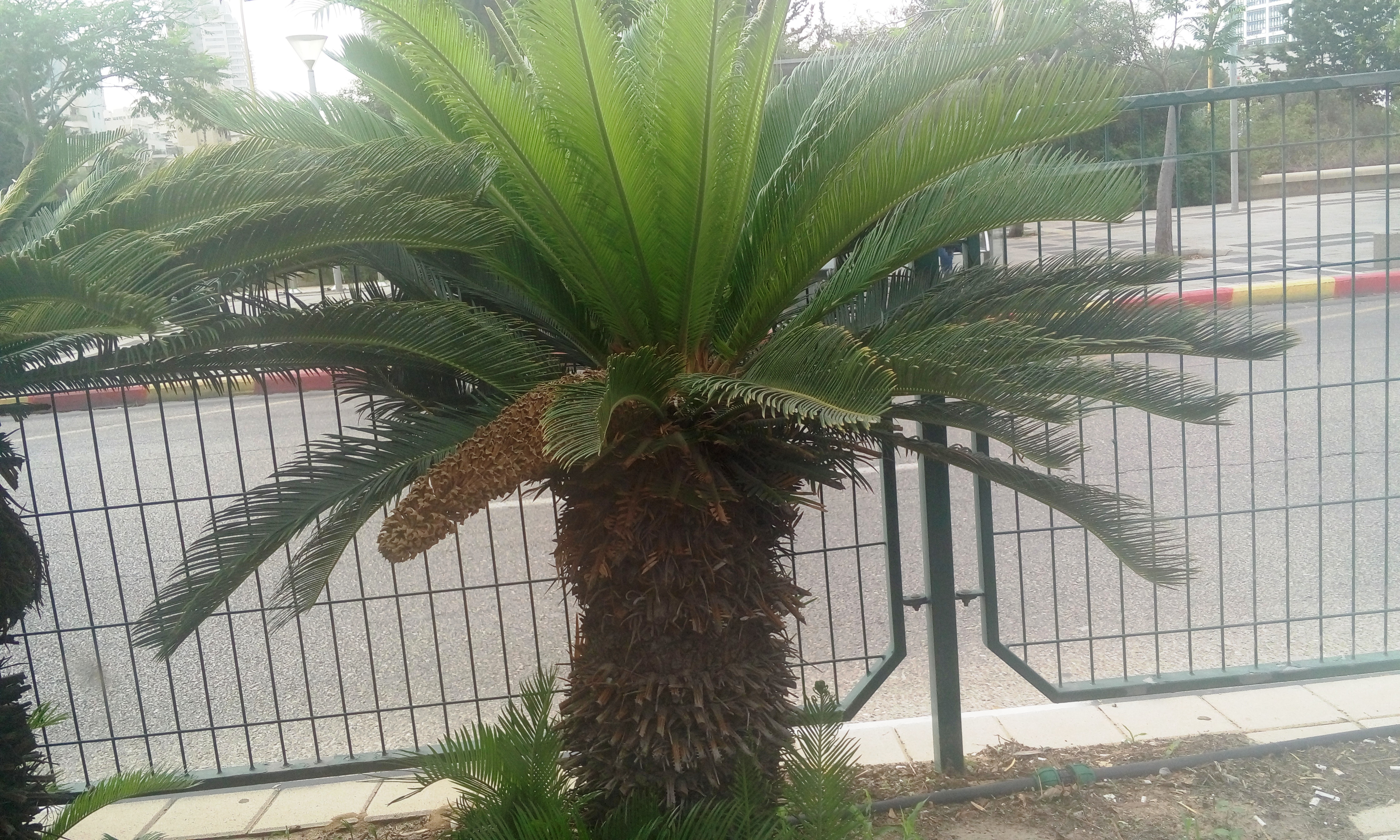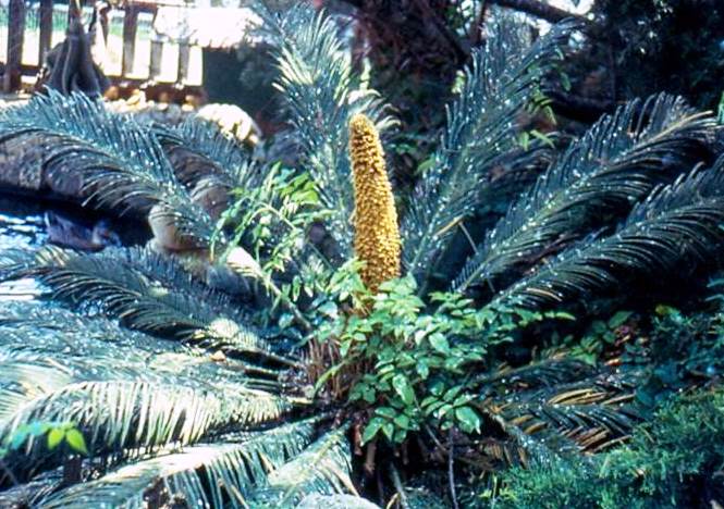 עץ דמוי דקל קטן המגיע עד 2 מ גובה. צומח מאד לאט ועם השנים מפתח חוטרים בצוואר השורש ונוצר גוש גדול של גזעים. עלים מנוצים נוקשים ביותר , בצבע ירוק כהה מופשלים כלפי חוץ ומטה. מכאן שמו. בפטוטרות העלים קוצים. העלים יוצאים פעם בשנה ,באביב , בדור ההולך וגדל מבחינת מספר העלים החדשים ככל שהצמח מתבגר. הצמח הוא מחסרי הפרחים. באביב מתפתחים אצטרובלים גדולים חומים על צמח הזכר ו'עוגת' עלים קטנים לבנבנים ושטוחים על צמח הנקבה. לאחר כחודש מתחילים בצמח הנקבה להתפתח הזרעים דמויי ביצה גם בגודלם שבהבשילם מקבלים צבע אדום כתום. לא כל הזרעים פוריים. צמח חזק מאד המתאים לקו 2 של חוף ים עמיד ליובש ולחצי צל. ניתן להעתקה בקלות גם כבוגר. כל חלקי הצמח רעילים למרות שביפן אוכלים חלקים ממנו אבל רק לאחר שטיפה טובה מאד.