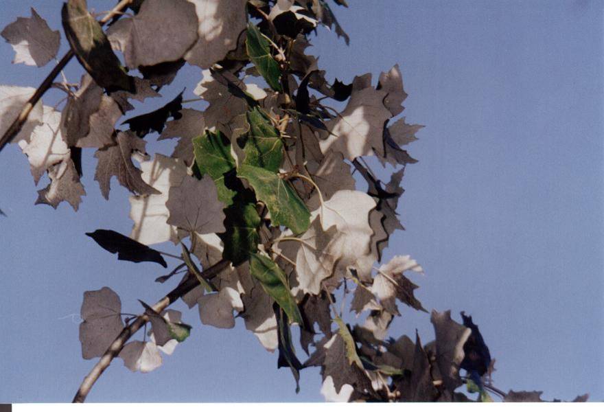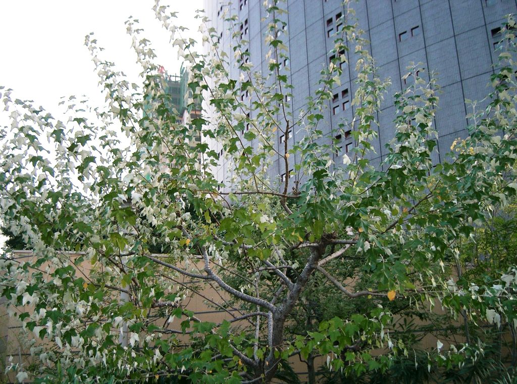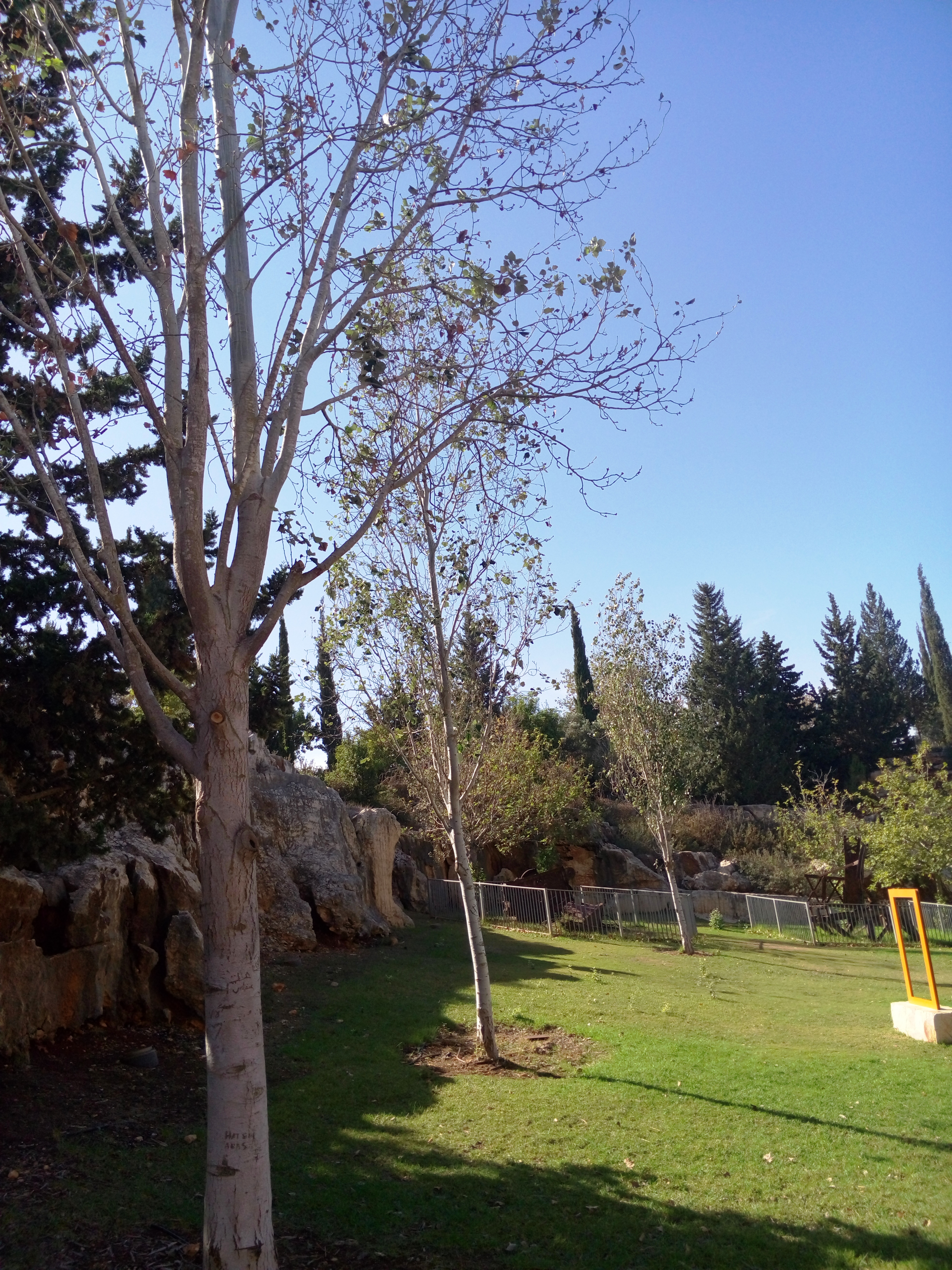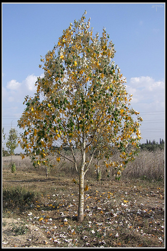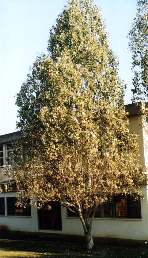 צבעי עלווה יפים מתנפנפים ברוח-לבן-כסף-ירוק, גזע זקוף קישוטי, מראה העץ הערום, צללית