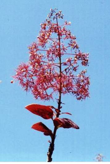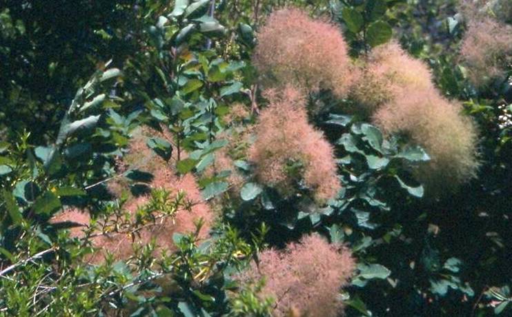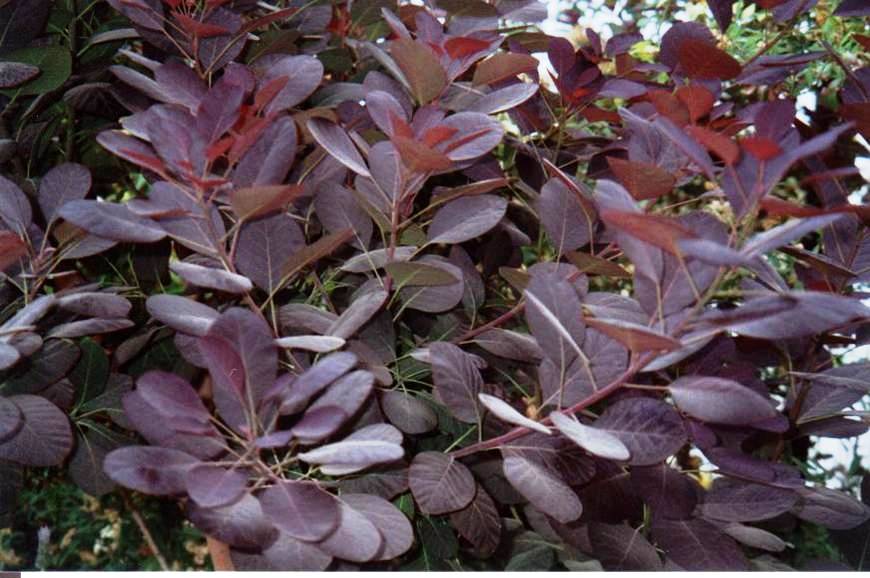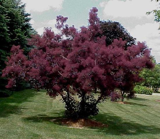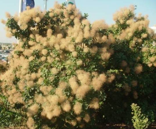 עץ או שיח נשיר בעל עלווה מעניינת ביותר בלבלוב, העלים בדרך כלל ירוקים כחלחלים אבל במשך כחודש באביב הם אדומים כיין ומאד מרשימים. במקביל לליבלוב הצמח פורח בצהוב באשכולות זקופים צהובים בולטים על רקע האדום של העלים. בתחילת הקיץ למשך כחודש וחצי מופיע הפרי ( שהוא בית גלעין רעיל ) מכוסה בשערות חומות או אדמדמות , תלוי בזן , והצמח ניראה אפוף עשן. מכאן שמו עץ העשן. מאד מרשים ויפה. צמח חזק אינו מפונק. ניתן לעצבו כעץ קטן. מתאים לשמש מלאה. זקוק להשקיה סדירה. מתאים לאזורי הארץ הקרירים והקרים.