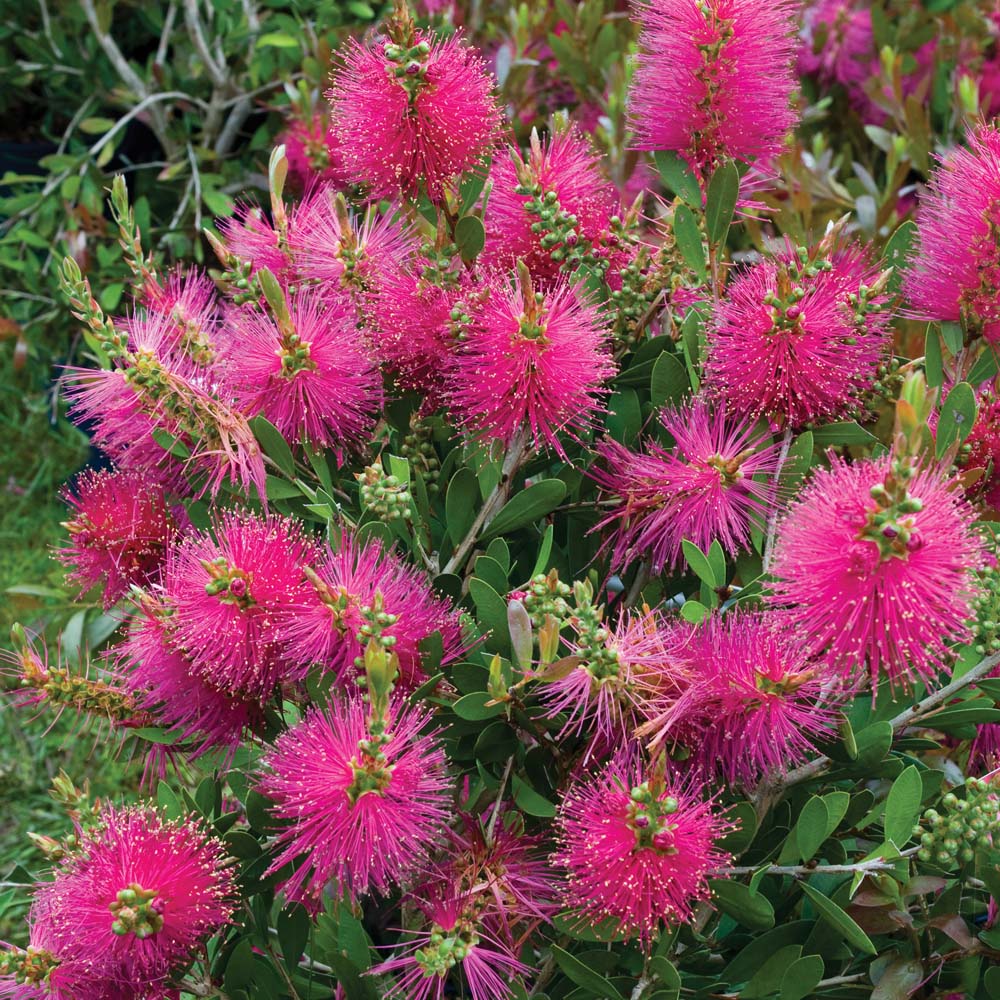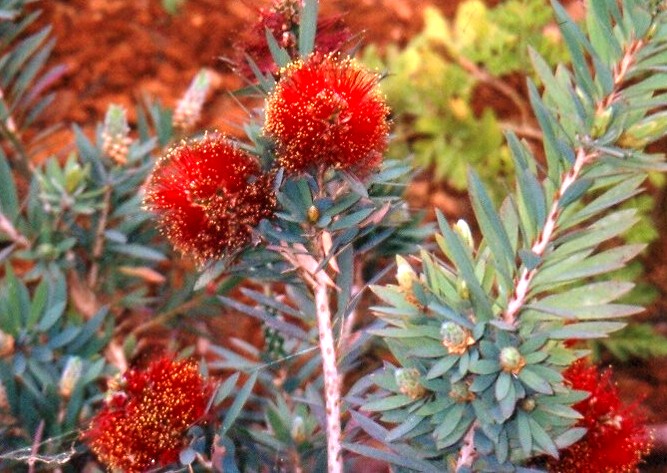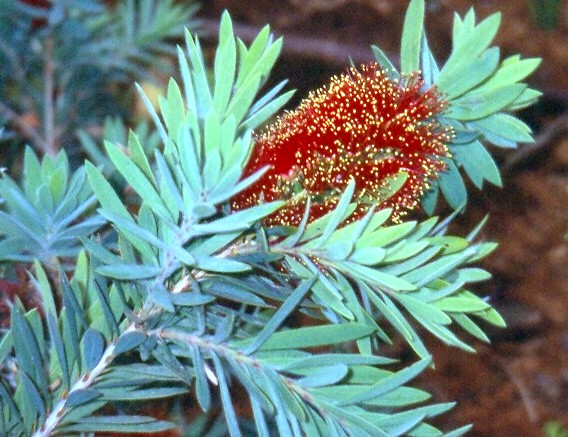 שיח ירוק עד ,צפוף וכריתי בצימוחו. בעל עלים סרגליים צפופים מאד על הענף בצבע ירוק כחלחל. הלבלוב החדש כסוף אדמדם ורך מאד. קישוטי. הפריחה ארוכה בסתיו ואביב נמשכת כחודשיים לפעמים בכמה גלים. הפרי אינו משמעותי במין זה של קליסטמון. צמח חזק מאד איטי בגידולו. משמש לכיסוי שטח גם במסלעות וערוגה פורחת. מתאים לכל הארץ ועמיד ליובש. לצל חלקי ושמש מלאה.