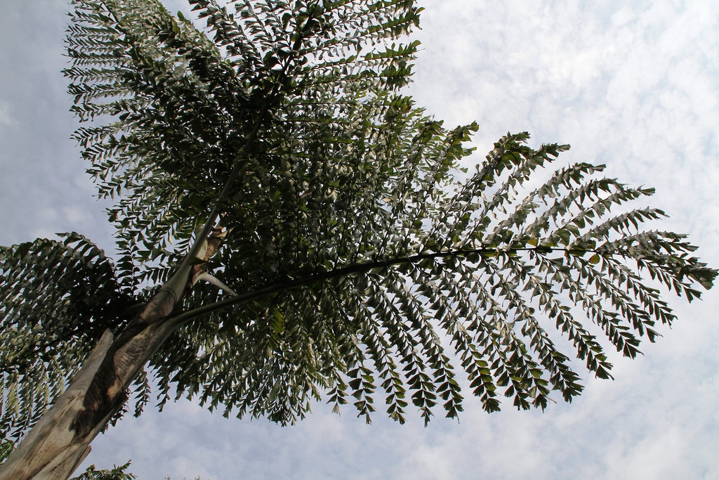 אפקט טרופי מעניין כי העלים יוצאי דופן בקרב הדקלים רק על גזע אחד