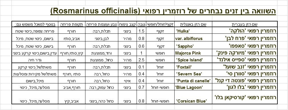 שיח ירוק עד ,הגדל בר בארץ באזורי ההרים. שיח תבלין מאכל ומרפא. בעל צימוח פרוע שרוע ומשתלשל (קיים גם זן זקוף) . עם השנים הגבעולים מתעצים ומתפתלים בצורה מאד קישוטית . בעל עלים צרים קטנים בצבע ירוק כהה ריחניים ביותר המשמשים לתיבול מאכלים רבים. לרוזמרין הרפואי הבר פותחו זנים גננים רבים ,רובם מיובאים ולהם צבעי ותקופות פריחה משתנים . גובה זני הרוזמרין הזוחל נע מ10 ס"מ ועד 70-80 ס"מ והיקף הכיסוי נע מ1 מ' ועד 2 מ'. צבעי הפריחה הם: תכלת או כחול עמוק/סגול . ראו טבלת השוואה בין זנים נבחרים בתמונות הצמח. הפרי לא משמעותי. צמח לקו ראשון או שני של חוף ים, לצידי דרכים למסלעות ולכיסוי שטח נמוך ולא מפונק. צמח חזק שאינו דורש אחזקה. הפריחה מושכת הרבה דבורים ומשמש כצמח דבש חשוב.