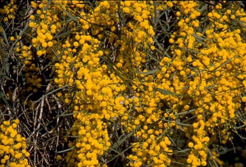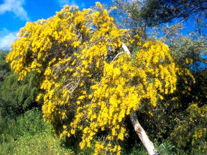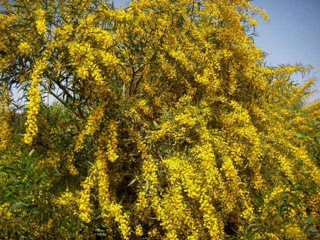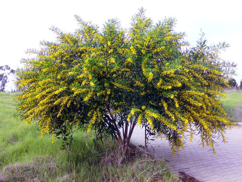 שיח גדול עץ קטן ירוק עד. אחד הפולשים החזקים והבעייתיים ביותר הקיימים בארץ. מפיץ את עצמו ללא בעיה מדן ועד אילת. לכן אין לשתלו בשום מקום והרשויות נלחמות בו לעקרו מכל מקום אפשרי. לצערנו ללא הצלחה. עלים בצבע ירוק כחלחל מאורכים איזמליים . באמצע החורף תחילת האביב בסביבות חודש פברואר פורח במשך כשלושה שבועות בהמוני פרחים דמויי פונפון צהובים ויפים. הפירות מסריחים ביותר כשמועכים אותם. חזק מאד ולא מפונק. מתאים לקו 1 של חוף ים. אינו זקוק להשקיה בכלל. הפצה מזרעים ומניצנים רדומים על גבעולים תת קרקעיים.